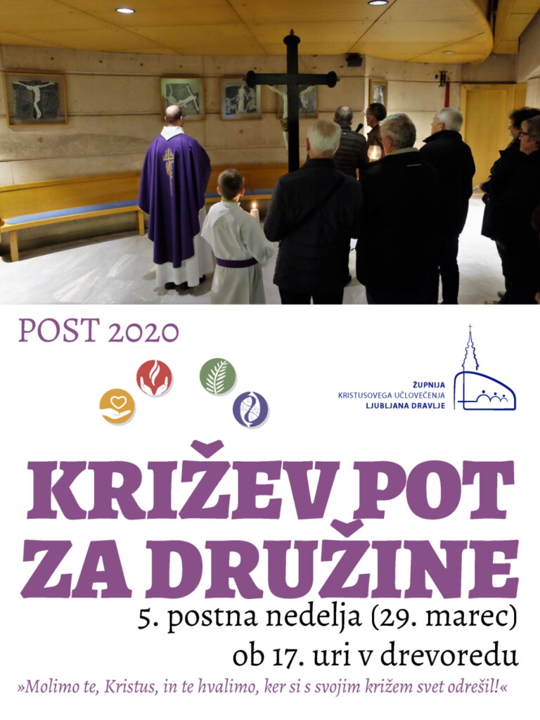 Letos pred družinskimi sv. mašami ne bo otroškega križevega pota po delih kot v preteklih letih, bo pa na 5. postno nedeljo, 29. marca ob 17. uri v drevoredu križev pot za družine.