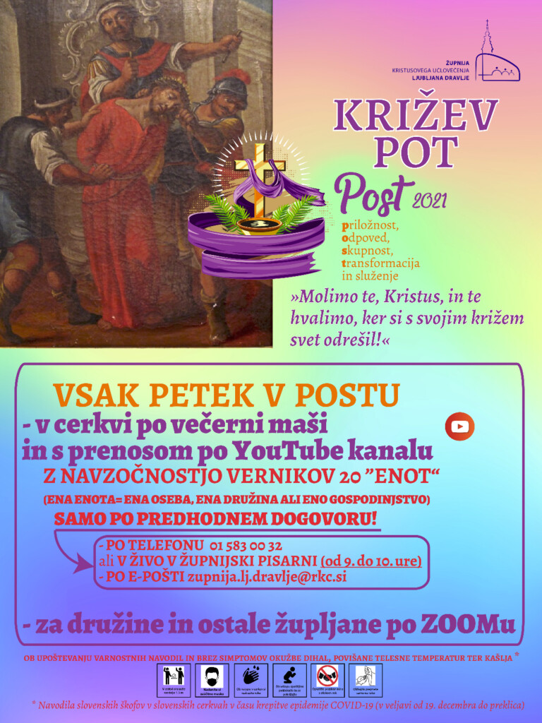 Eden bo potekal v cerkvi po petkovi večerni maši ob 19.30, prenašan po župnijskem Youtube kanalu.