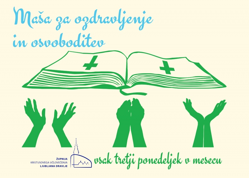 Kot običajno na tretji ponedeljek v mesecu (19. februar), bo v novi cerkvi ob 20.00 maša za ozdravljenje in osvoboditev, ki jo bo daroval p. Mio Kekić DJ. Po maši bo tudi blagoslov vode, soli in nabožnih predmetov ter molitev pred Najsvetejšim in nad posamezniki, z možnostjo prejema bolniškega maziljenja.