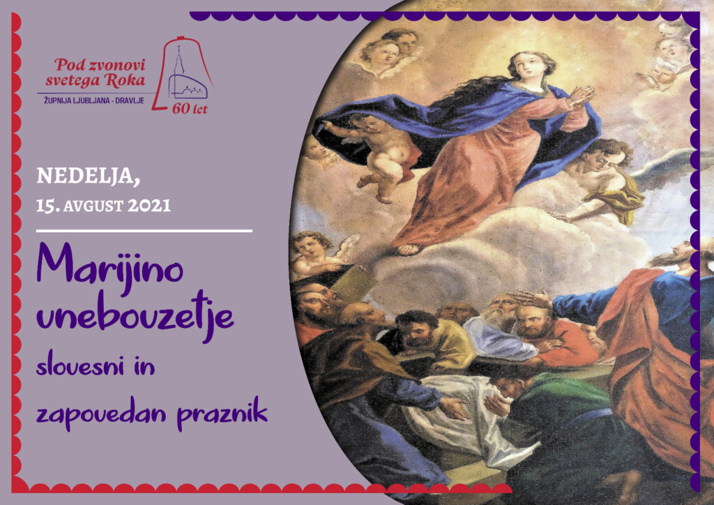 Na veliki šmaren, v nedeljo, 15. avgusta, bodo sv. maše ob 6.30, 8.30 , 10.00 11.00 (DSO), 11.30 in 19.00 (prenos na župnijskem YouTube kanalu)