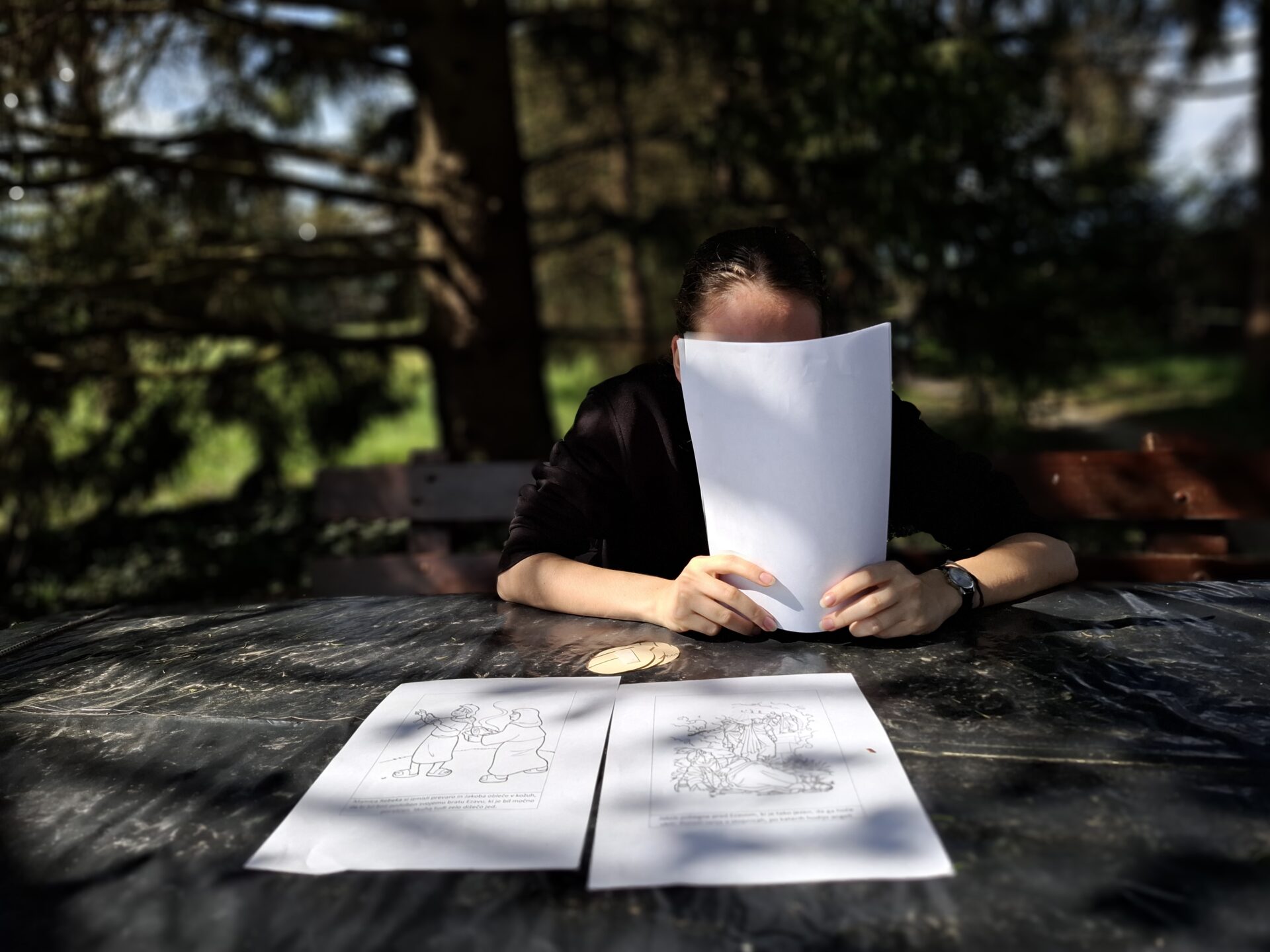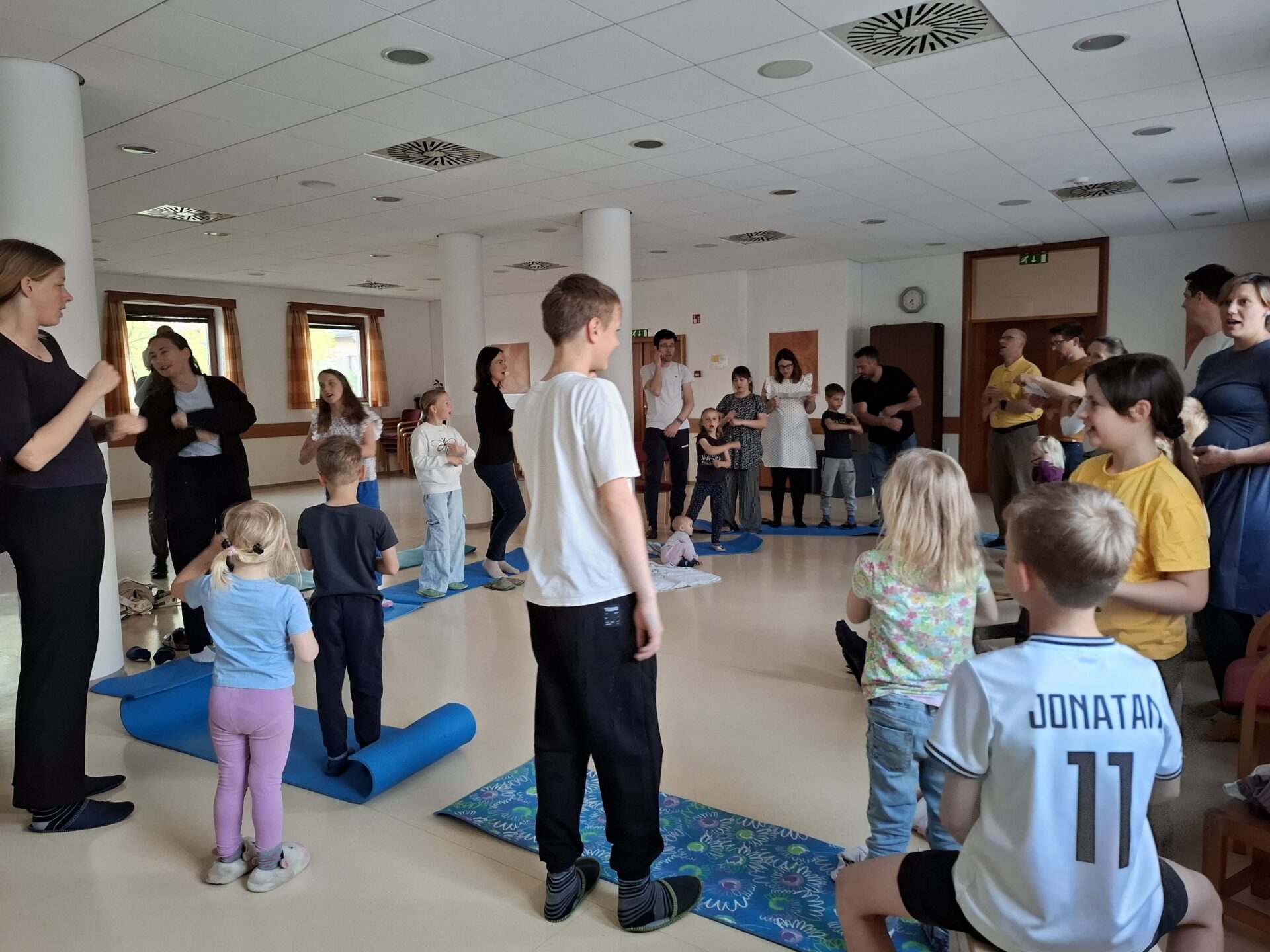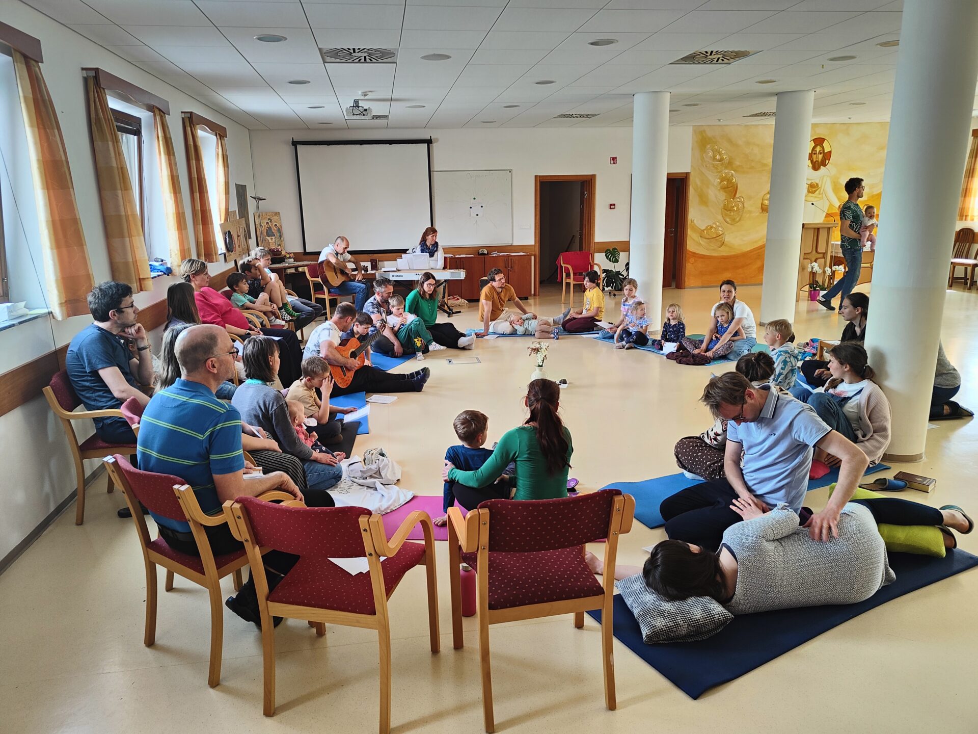Otroci so se pripravljali na sveto mašo: v dveh skupinah so pripravili dramatizacijo evangelija. Po sveti maši in kosilu smo se še zadnjič zbrali in pred slovesom razkrili svoje skrite prijatelje. Eden izmed ciljev vikenda je bil tudi ta, da se družine (in posamezniki) bolje spoznamo med sabo … In s pomočjo pozornosti, opazovanja in zanimanja za naše skrivne prijatelje smo to z lahkoto dosegli.