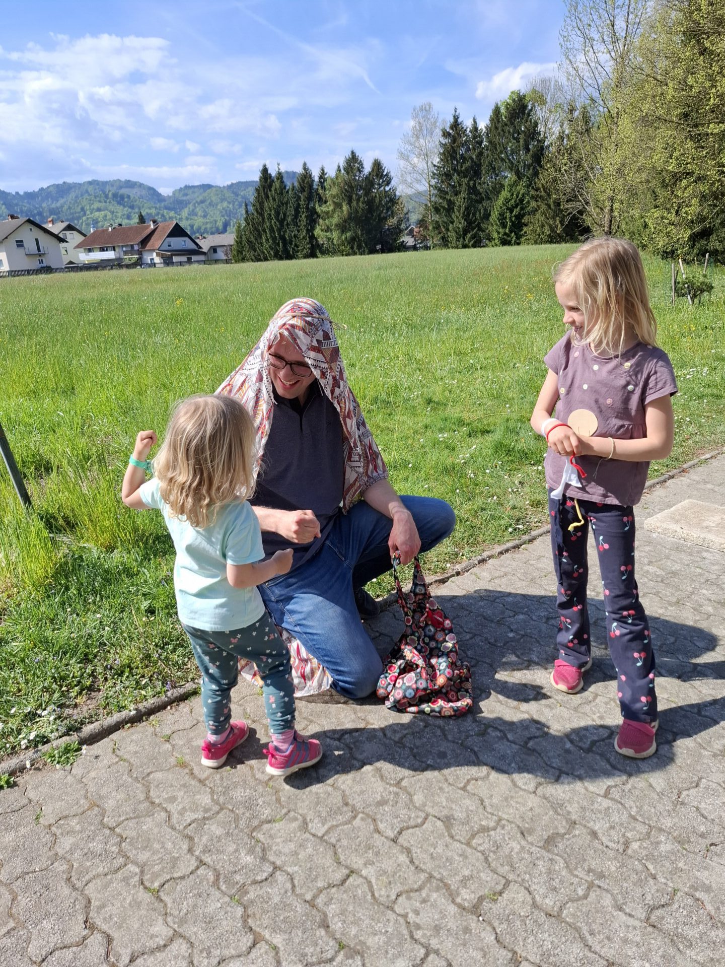 Po kosilu smo imeli veliko igro za družine, s pomočjo katere smo spoznavali leta, ki jih je Jakob preživel pri svojem stricu Labanu (1 Mz 30,25-43). Naš cilj je bil, da smo Jakobovo drobnico pomnožili (s pomočjo uspešno opravljenih nalog) ter ovce in koze zamenjali za kamele. Pomagali smo mu, da je obogatel. Z nami je sodeloval Jakob, ki je pike, lise in maroge na drobnici množil, oviral pa nas je strašni Laban, ki se je (poleg otrok) najbolj vživel v svojo vlogo.