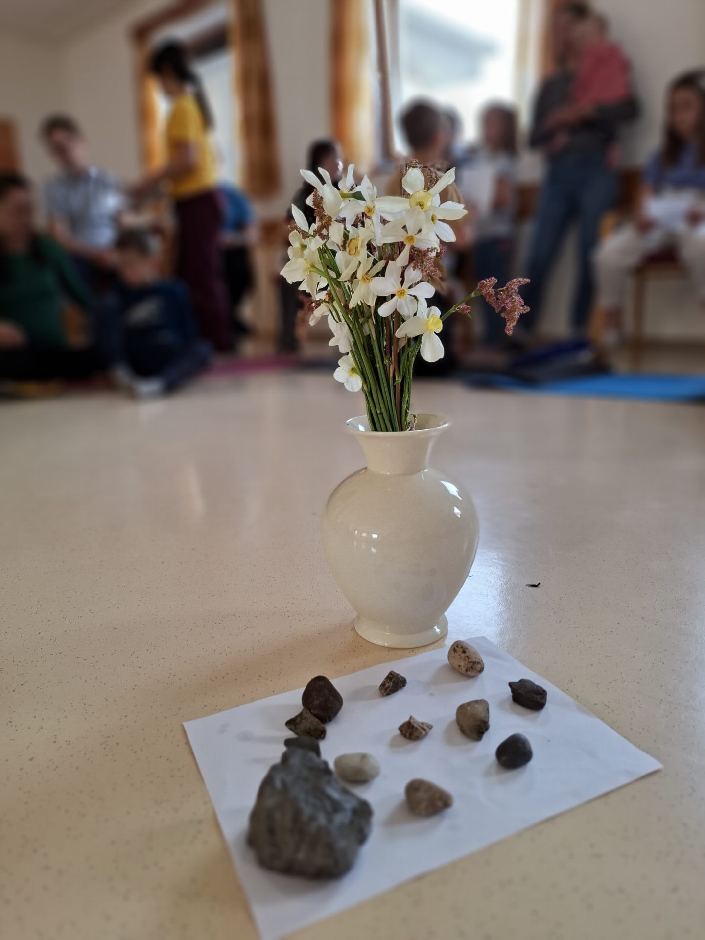 Šolarji so nadaljevali s katehezo ter razmišljali o Jakobovem maziljenju kamna in tudi sami mazilili kamne, ki so jih našli, kar jim je pomagalo razumeti, da je to zunanji znak, namenjen spominjanju na srečanje z Bogom.