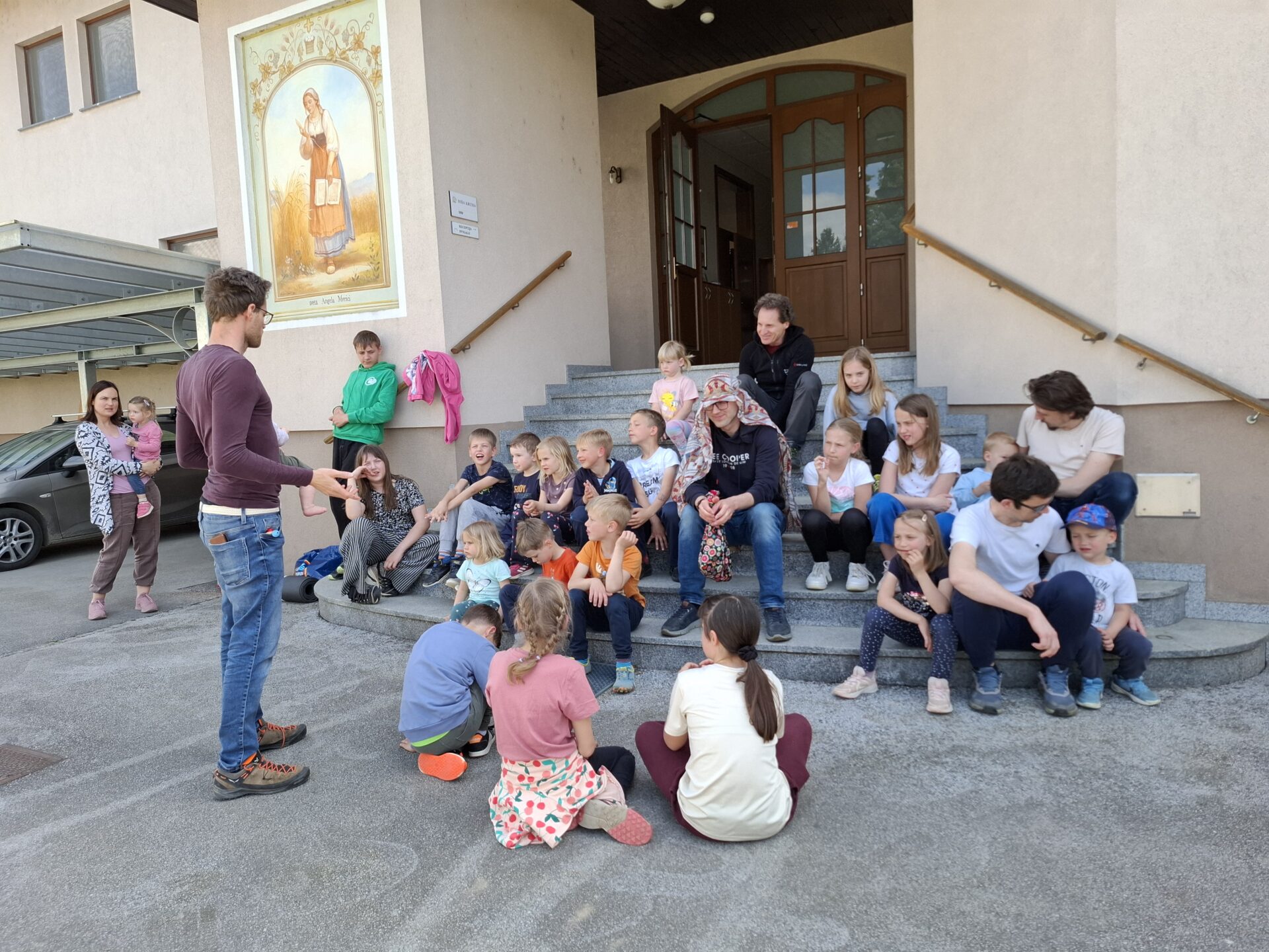 Predšolski in šolski otroci so se zaposlili s knjižicami/pobarvankami z Jakobovo zgodbo. Šolarji so imeli katehezo, med katero so prav tako prisluhnili razlagi odlomka o Jakobovih sanjah. V kapeli so imeli čas za molitev in v naravi priložnost, da so ‘šli v puščavo’.