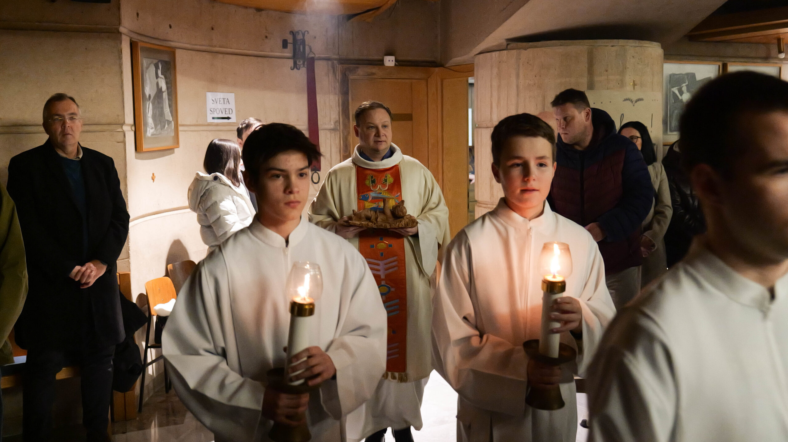 Pred začetkom božične mladinske svete maše je bila v cerkvi uprizorjena igrana božičnica z naslovom Prihod Luči. Brez izgovorjenih besed, ob spremljavi glasbe in igre, je na preprost, a globok način predstavila temeljno božično sporočilo – prihod Jezusa Kristusa, Luči sveta.