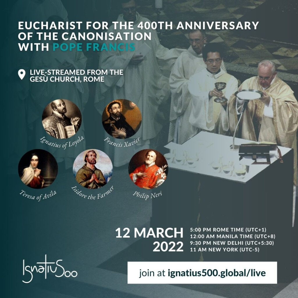 V soboto, 12. marca ob 17. uri , bomo lahko z neposrednim prenosom preko spleta spremljali sveto mašo, ki jo bo vodil papež Frančišek v jezuitski cerkvi del Gesù v Rimu, zvečer ob 19. uri pa bomo jezuiti praznovali v Dravljah s slovesno mašo (tudi s prenosom), ki jo bo vodil provincial p. Miran Žvanut.