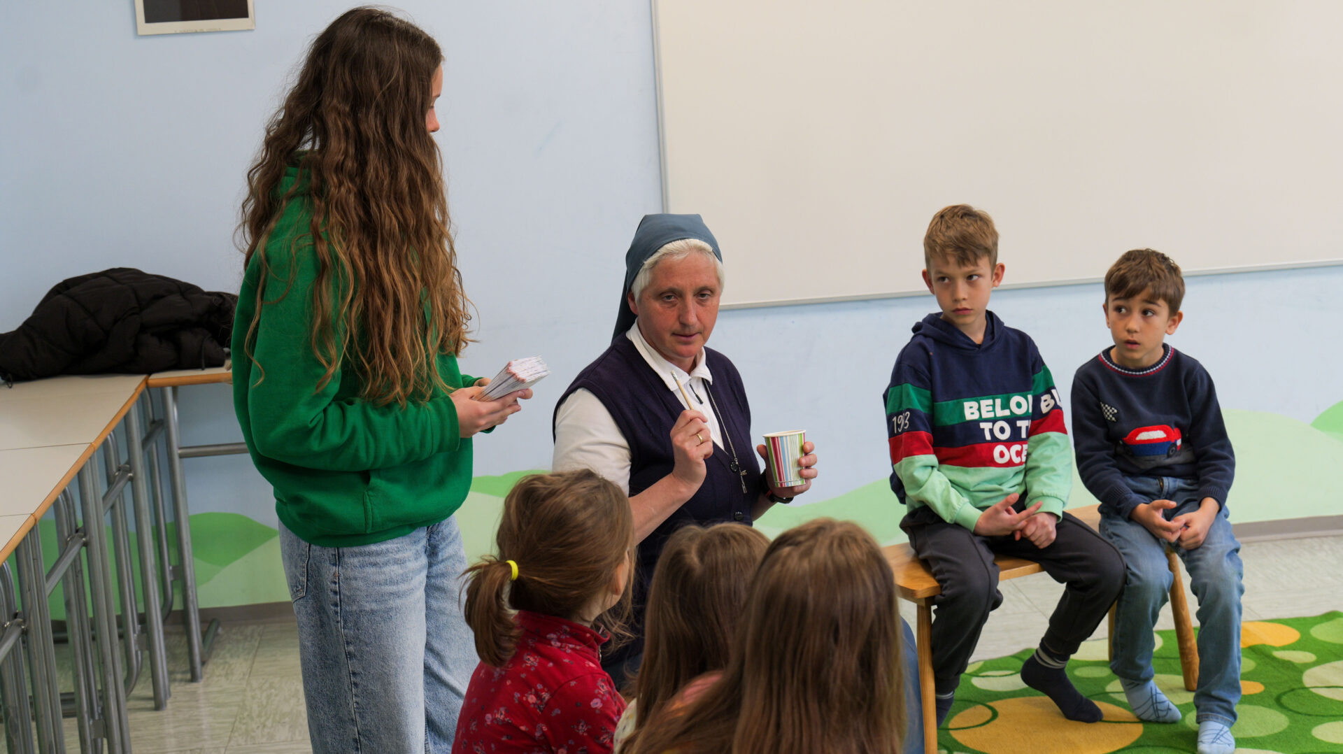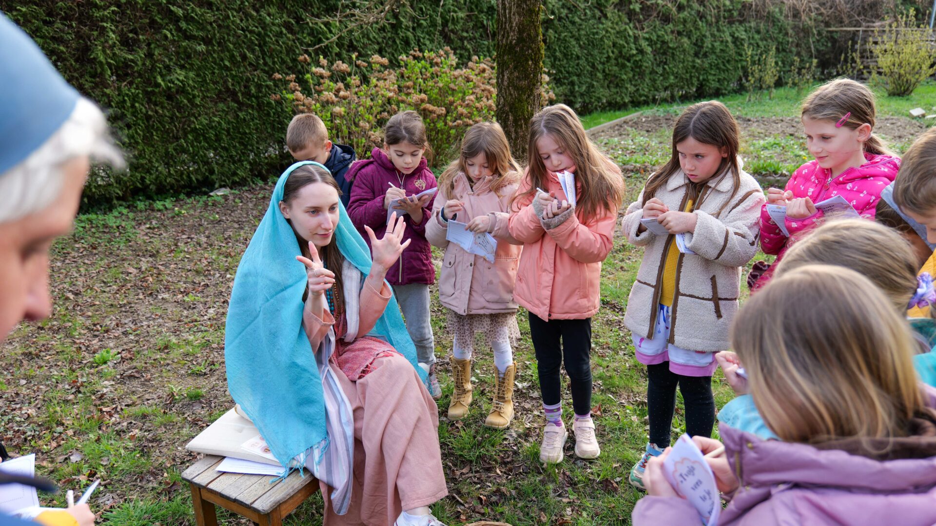Otroci so v knjižici, ki so jo dobili, zbirali nalepke s simboli, poleg tega pa so zapisali tudi, kje v Svetem pismu lahko najdejo zgodbo, ki so jo slišali.