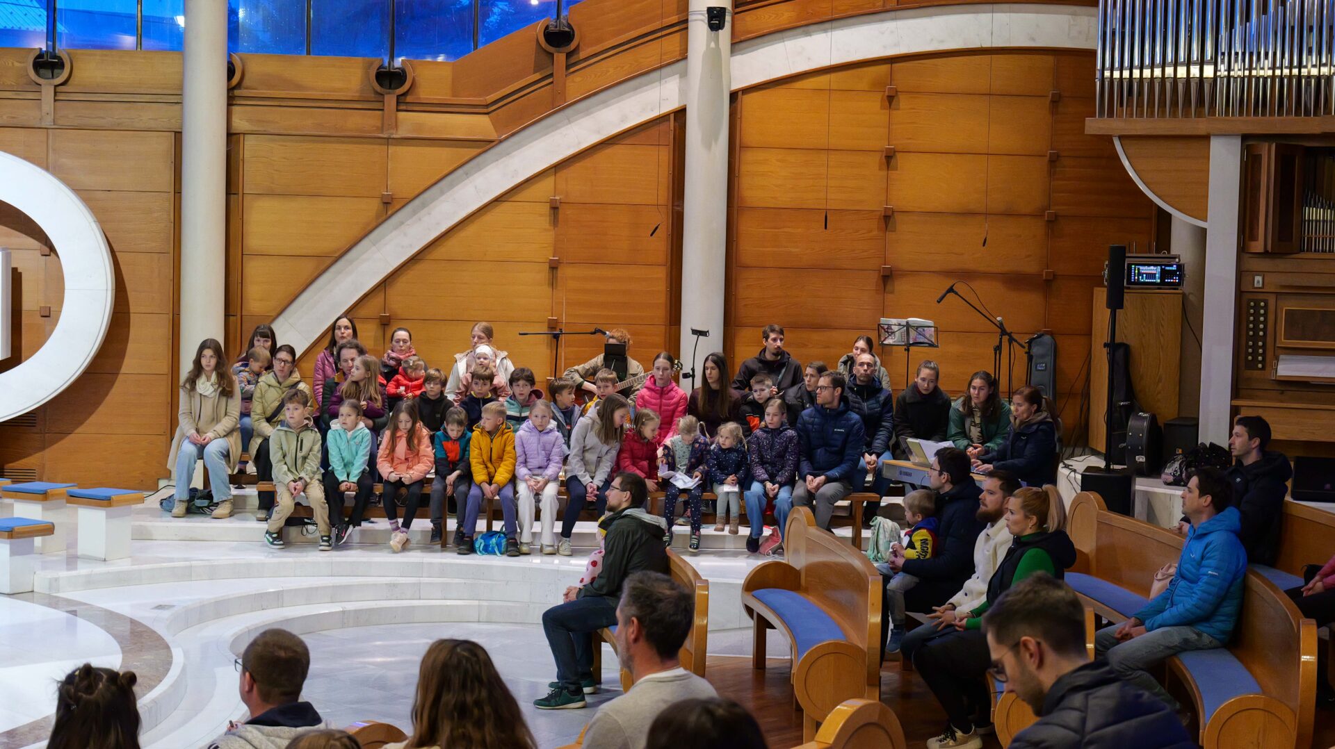 Starši (in ostali odrasli) smo v cerkvi prisluhnili pričevanju Urške Valjavec, žene in mame, ki je izkusila najhujšo bolečino, ki jo lahko doživi mama – smrt prvorojenca Rožleta. Urška je obnovila ključne dogodke šestih nepredstavljivo težkih let, od Rožletovih prvih bolečin v levem ušesu do njegove smrti. A Urškina pripoved, tako iskrena, preprosta in mestoma celo humorna, se ni osredotočala na trpljenje, bolečino in izgubo, pač pa nas je Urška z deljenjem (zgolj nekaterih) čudežev, ki jih je bila deležna, ter s svojo neomajno in trdno vero navdihnila in spodbudila, da tudi mi, tako kot ona, povsem zaupamo Jezusu. Ganljivemu in navdihujočemu pričevanju je sledila adoracija. Čas pred Najsvetejšim smo preživeli v ob izjemni glasbi, Urškinih iztočnicah, pa tudi v tišini…